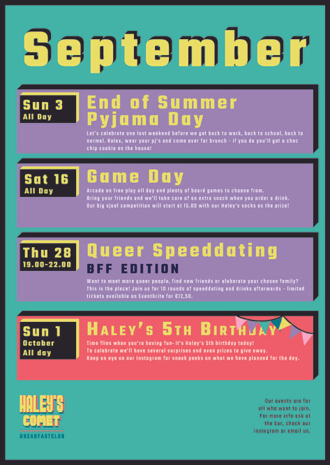Menukaarten, event kalender, stempelkaarten en leuke items zoals sokken en sjaals. Voor een super gezellige koffiebar in Den Haag.
